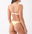 · Bikini confeccionada con Lycra brillosa · Triangulo bajo busto combinado · Bombacha less para regular · Forrería en crudo / Si la prenda es en color negro, la forreria es negra